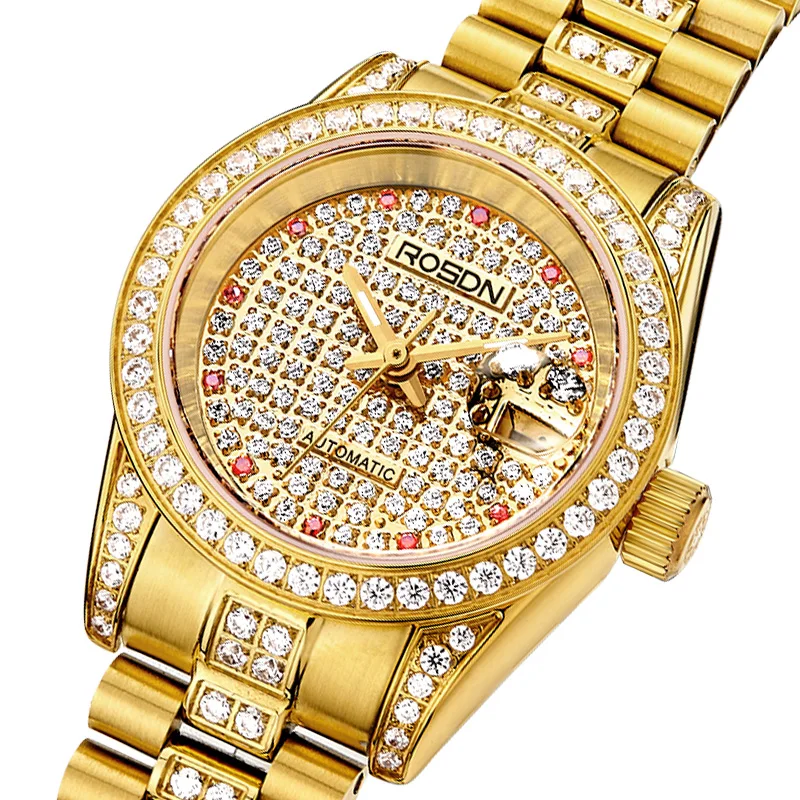 Discount FRANCE ROSDN Women's Watches Luxury Brand With MIYOTA Automatic Mechanical Watch Women Full Diamond