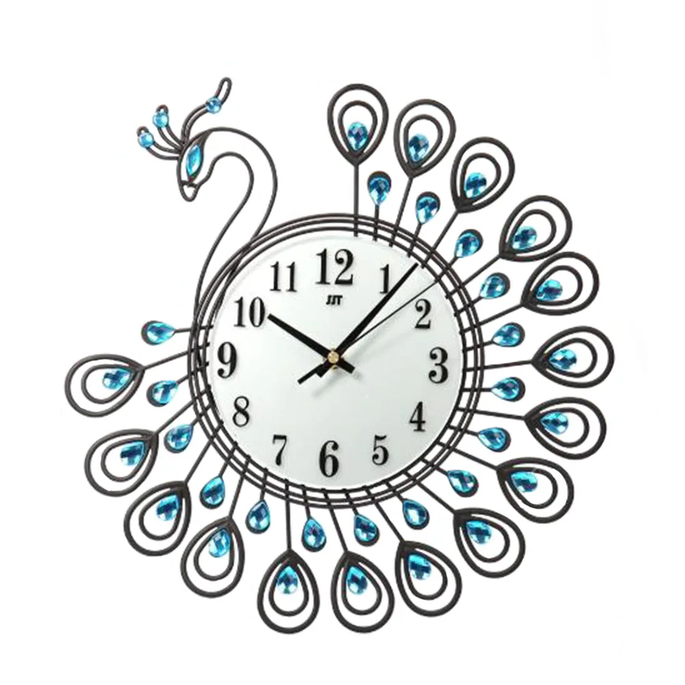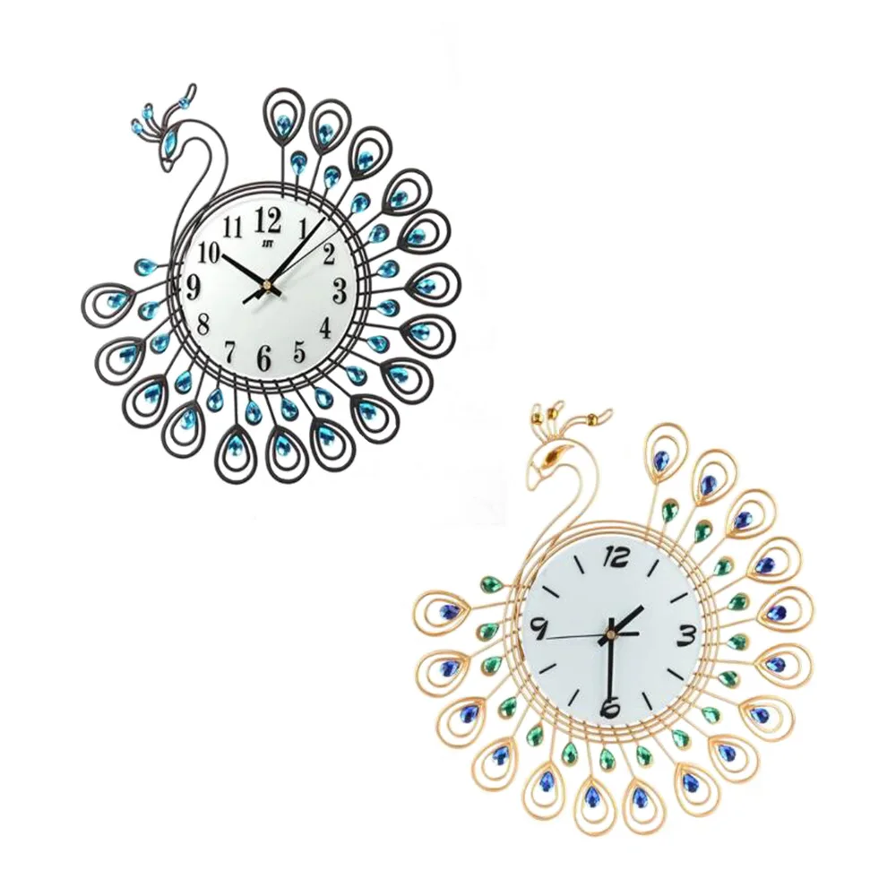 Flash Sale Large 3D Gold Diamond Peacock Wall Clock Metal Watch for Home Living Room Decoration DIY Clocks Cra