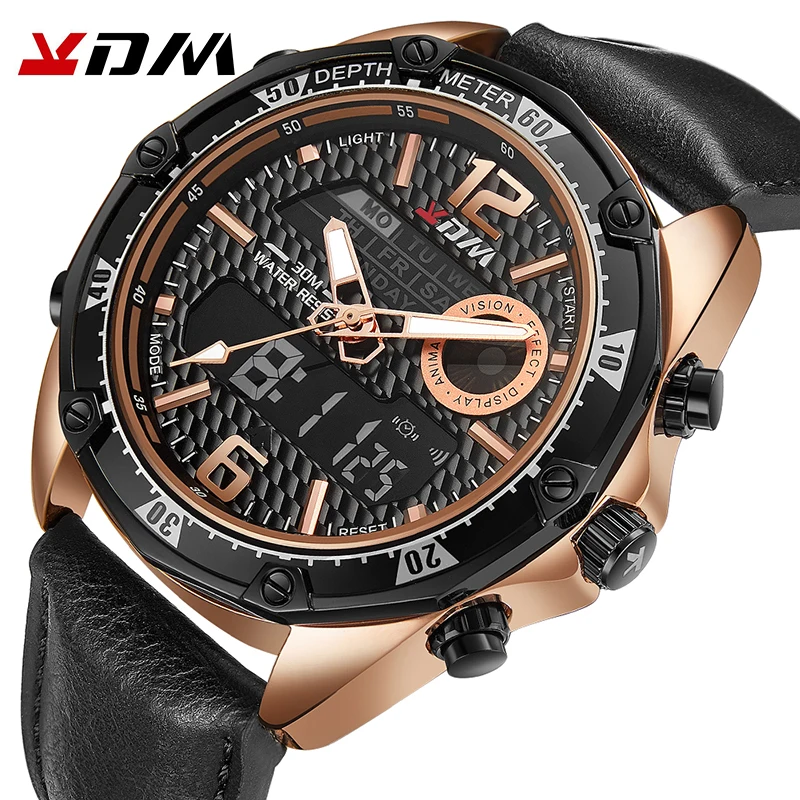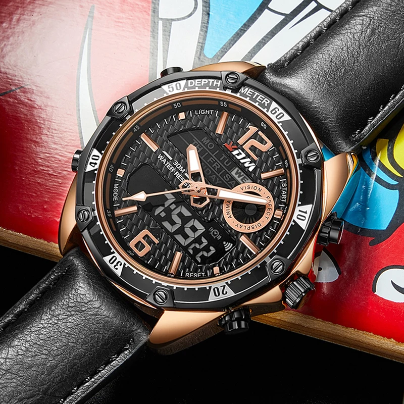Discount KDM Luxury Brand Waterproof Military Sport Watches Men Leather Band Digital Quartz Analog Watch Clo